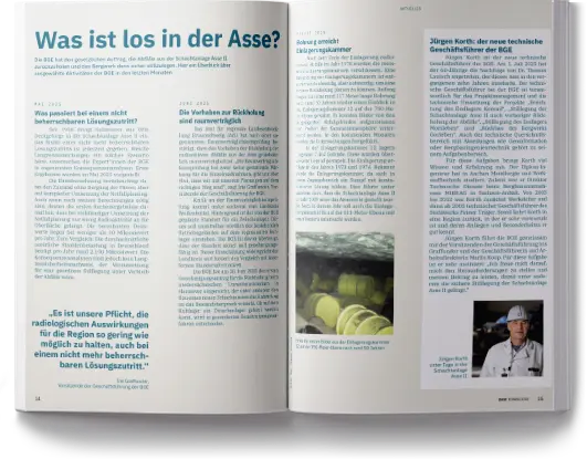 Die BGE hat den gesetzlichen Auftrag, die Abfälle aus der Schachtanlage Asse II zurückzuholen und das Bergwerk dann sicher stillzulegen. Hier ein Überblick über ausgewählte Aktivitäten der BGE in den letzten Monaten.