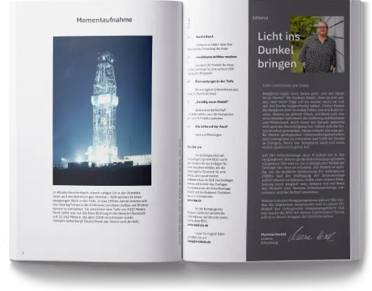 Bergleute sagen noch heute gern: „Vor der Hacke ist es duster.“ Sie meinen damit, dass sie erst wissen, was unter Tage auf sie wartet, wenn sie sich mit der Hacke vorgearbeitet haben. Früher fanden die Bergleute dort in vielen Fällen nur wertloses Gestein. Hatten sie jedoch Glück, erschloss sich eine neue Erzader und damit die Hoffnung auf Reichtum und Wohlstand. Auch wenn der Spruch weiterhin eine gewisse Berechtigung hat, haben sich die Zeiten deutlich gewandelt. Heute erlaubt uns eine große Palette geologischer Untersuchungsmethoden, den Untergrund zu erkunden und Licht ins Dunkel zu bringen, bevor ein Bergmann auch nur einen ersten Spatenstich getan hat.